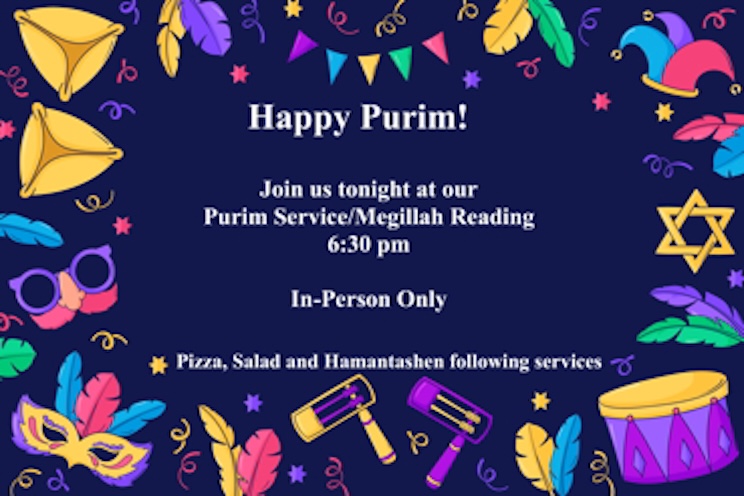 Come make some noise, as we celebrate Purim in-person on March 2 at 6:30 pm.